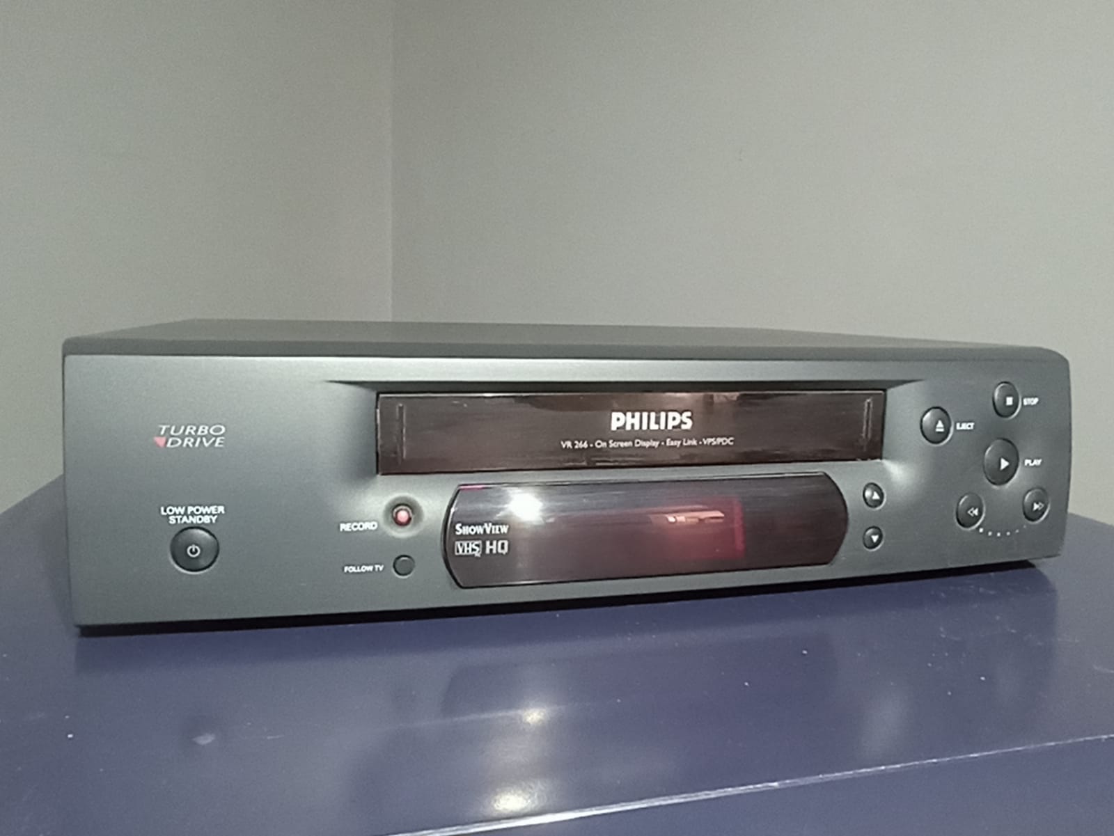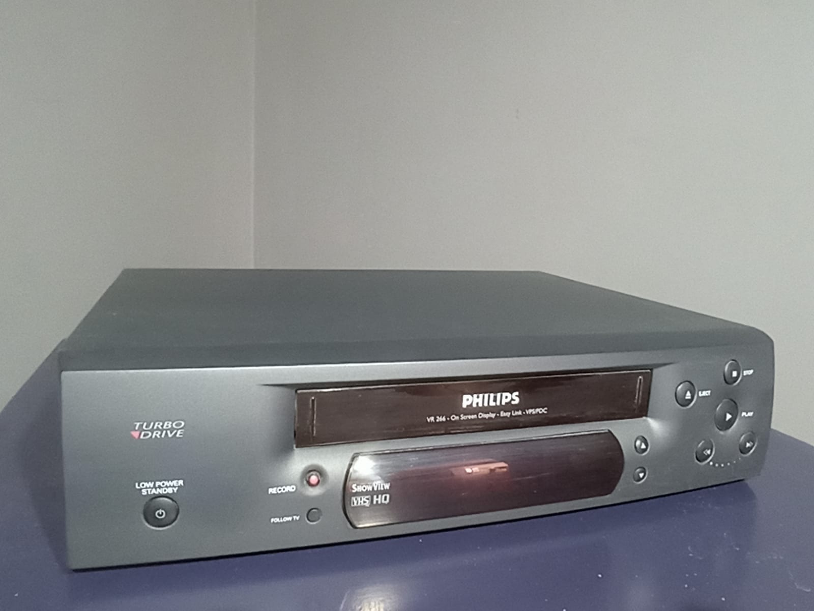 Philips VR266/02 VHS videómagnó – retro videólejátszó régi kazetták lejátszására és digitalizálására. Megbízható Philips minőség, SCART csatlakozással. A termék átvizsgálásra szorul, a cég vállalja az átvizsgálást átvétel előtt.